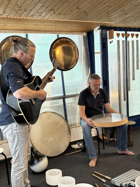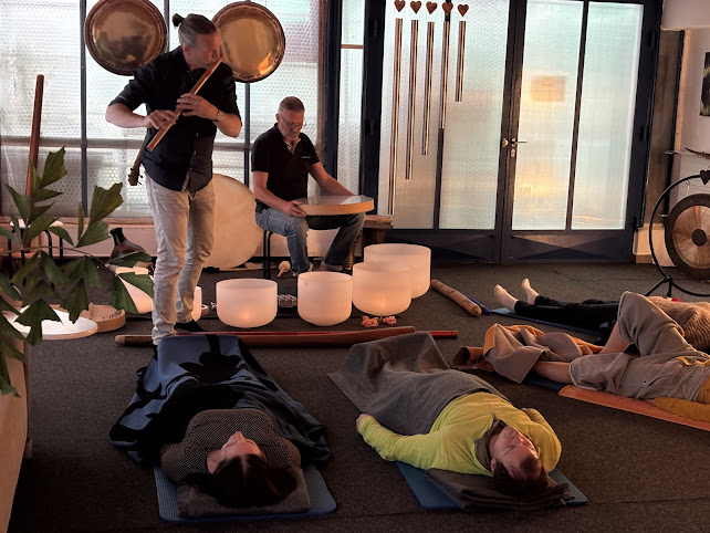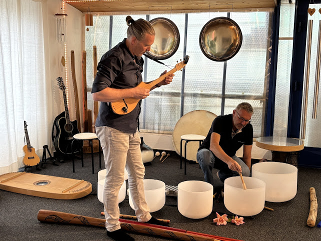 In der Klangmeditation begleiten Thomas Elliker und ich deine innere Reise mit Kristall-Klangschalen, abgestimmt auf die 7 Chakras, verschiedenen Didgeridoos, Trommeln, Free-Notes und anderen Instrumenten.